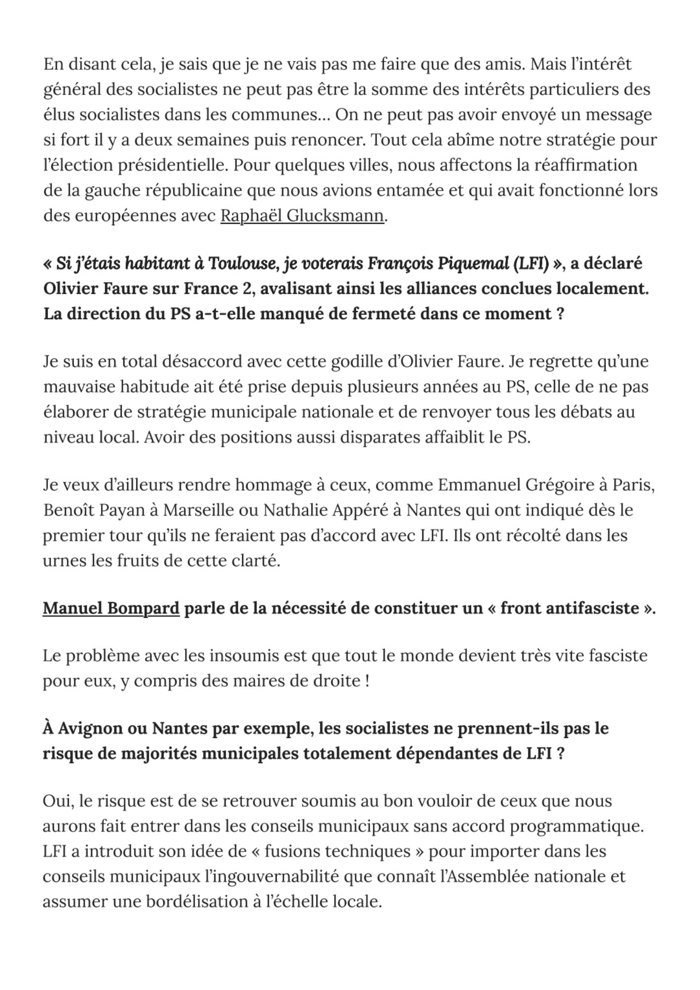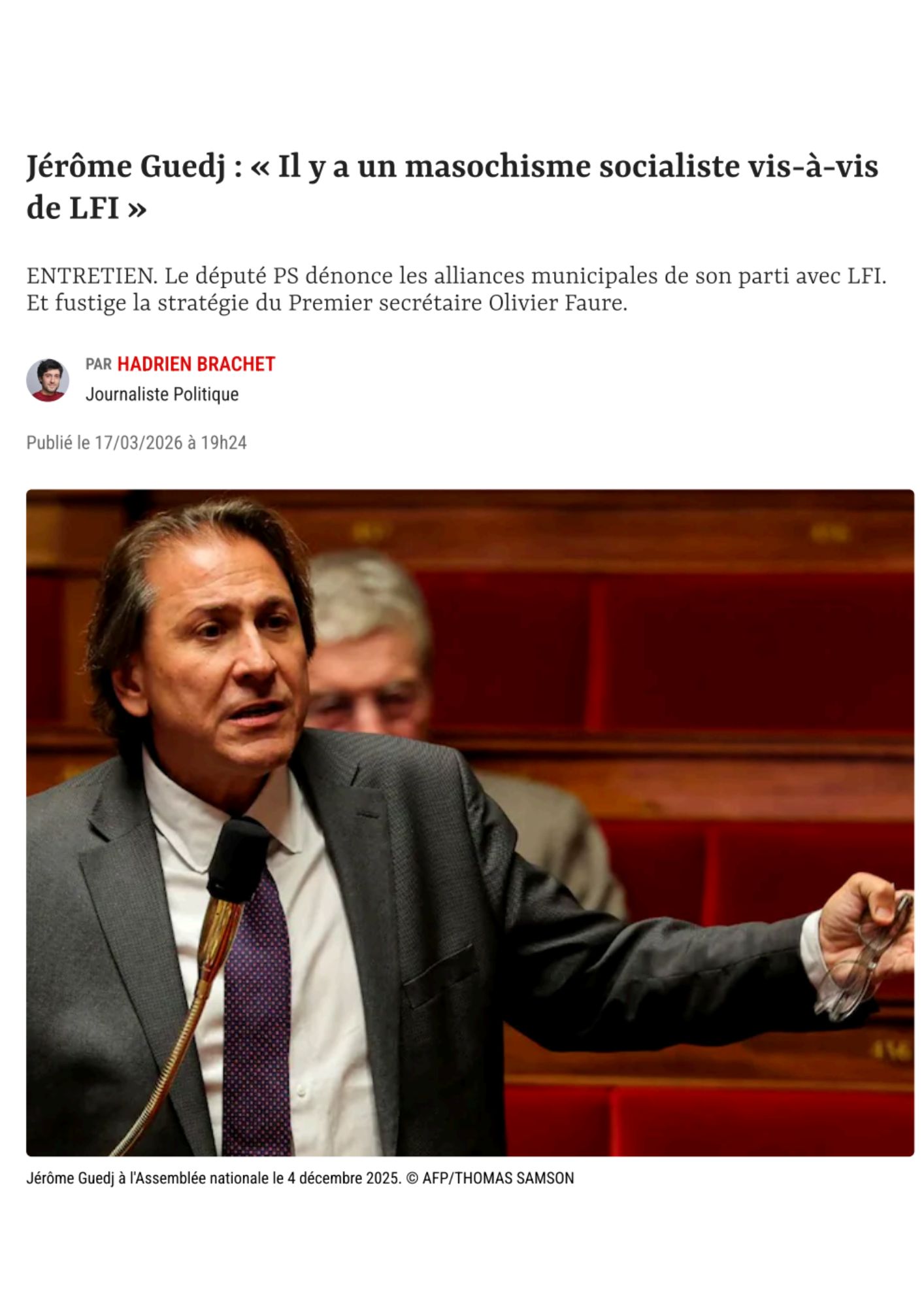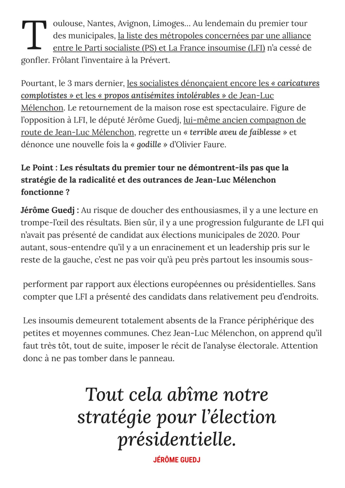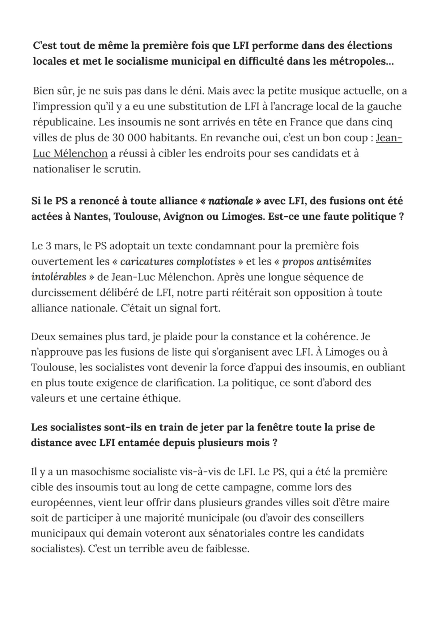 « Il y a un masochisme socialiste vis-à-vis de LFI » Le Point