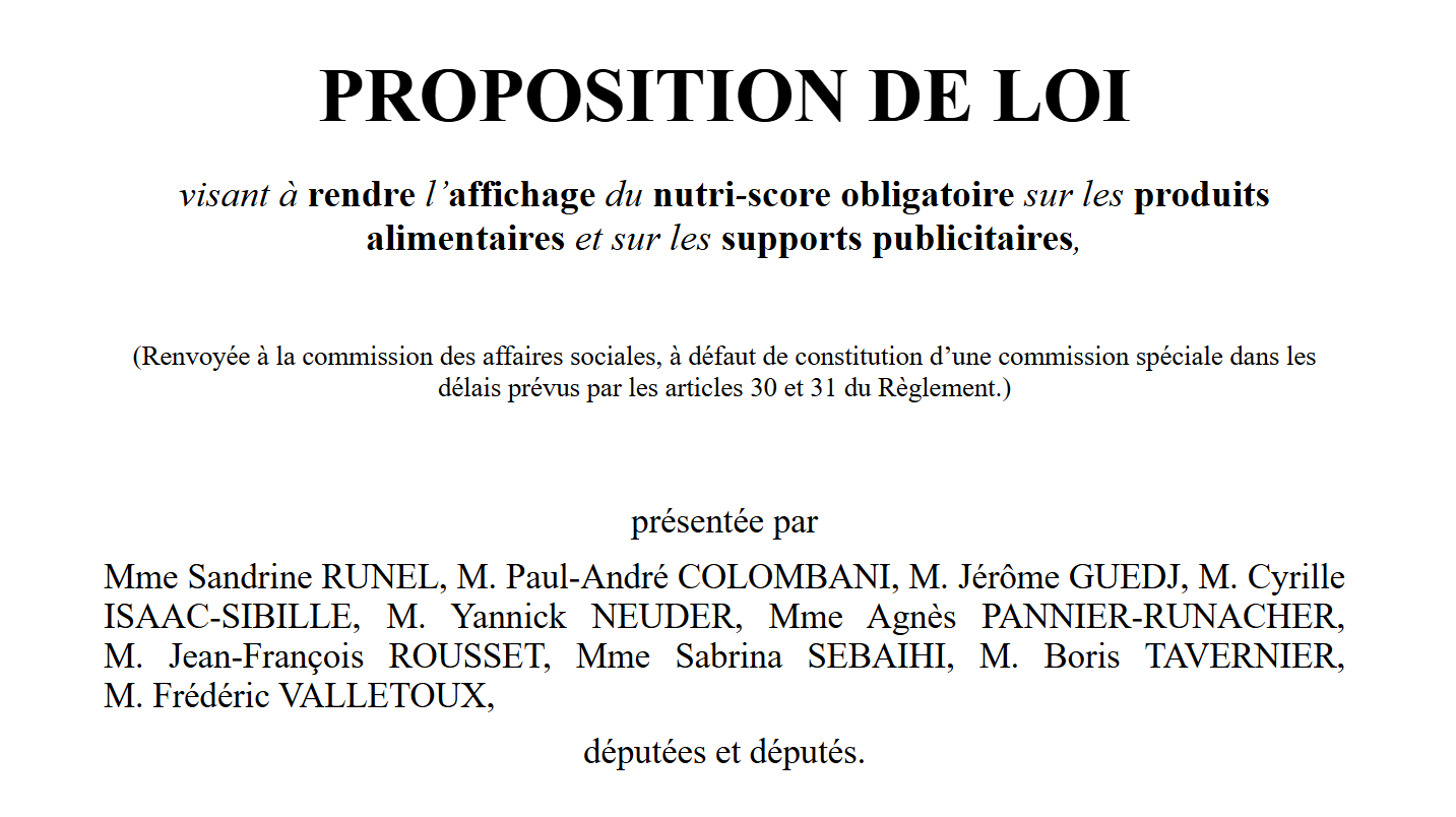 Cette diversité de signatures prouve que l’obligation du Nutri-Score est une mesure de bon sens qui fait désormais consensus chez les élus comme chez les citoyens, puisque 94 % des Français la soutiennent. C’est d’ailleurs tout l’objet de la Proposition de loi n° 2599 que nous venons de déposer officiellement sur le bureau de l’Assemblée nationale.