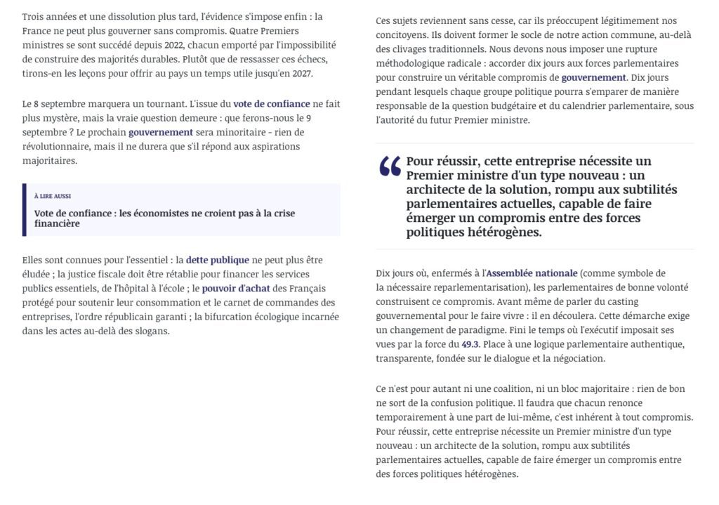 Je crois que l’heure est venue de bâtir un contrat démocratique nouveau. Cela suppose d’abord de reconnaître l’échec de la stratégie présidentielle : gouverner seul, sans coalition, a mené à l’impuissance. Nous devons en tirer les leçons.
